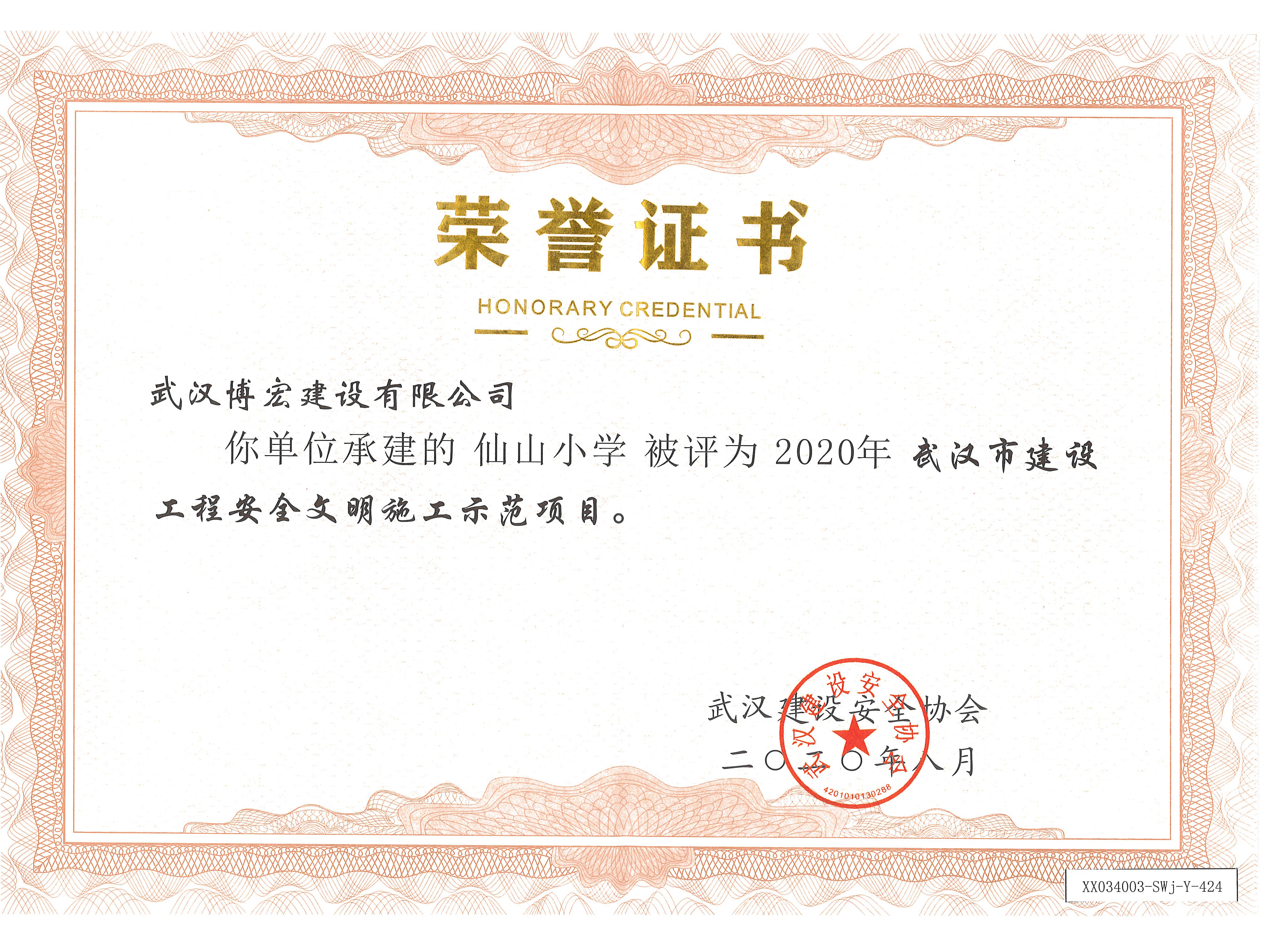 2020年武漢市建設(shè)工程安全文明施工示范項目(仙山小學(xué))