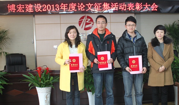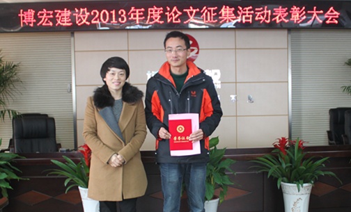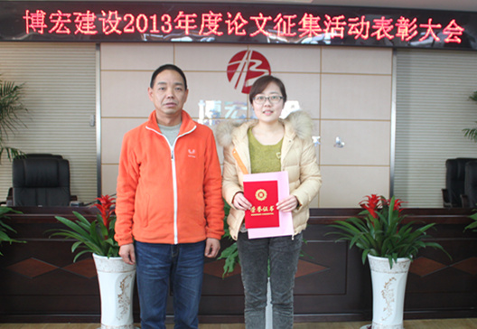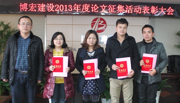 2014年3月5日下午在武漢博宏建設(shè)有限公司會(huì)議室舉行了2013年度博宏建設(shè)論文征集活動(dòng)表彰大會(huì),財(cái)務(wù)室鄒璇同志的論文《試論博宏公司如何分?jǐn)偲髽I(yè)管理費(fèi)用的方法探討》榮獲一等獎(jiǎng)。