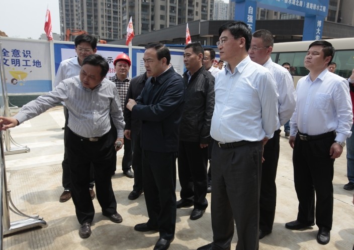 5月5日,武漢市市長唐良智、副市長張光清一行蒞臨博宏建設(shè)十升路道排工程項目施工現(xiàn)場檢查指導(dǎo)工作。