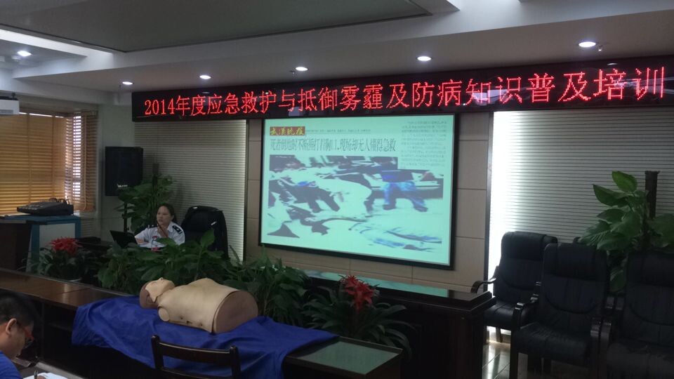 培訓(xùn)包括三部分,汪主任首先從職業(yè)健康安全角度出發(fā),詳細介紹了人體的幾大穴位以及按摩的方法;現(xiàn)場演示模擬了心肺復(fù)蘇和人工呼吸的搶救;最后對當下霧霾天氣的產(chǎn)生和影響作了簡單介紹,并告訴我們?nèi)绾蔚钟溆绊憽?/FONT>