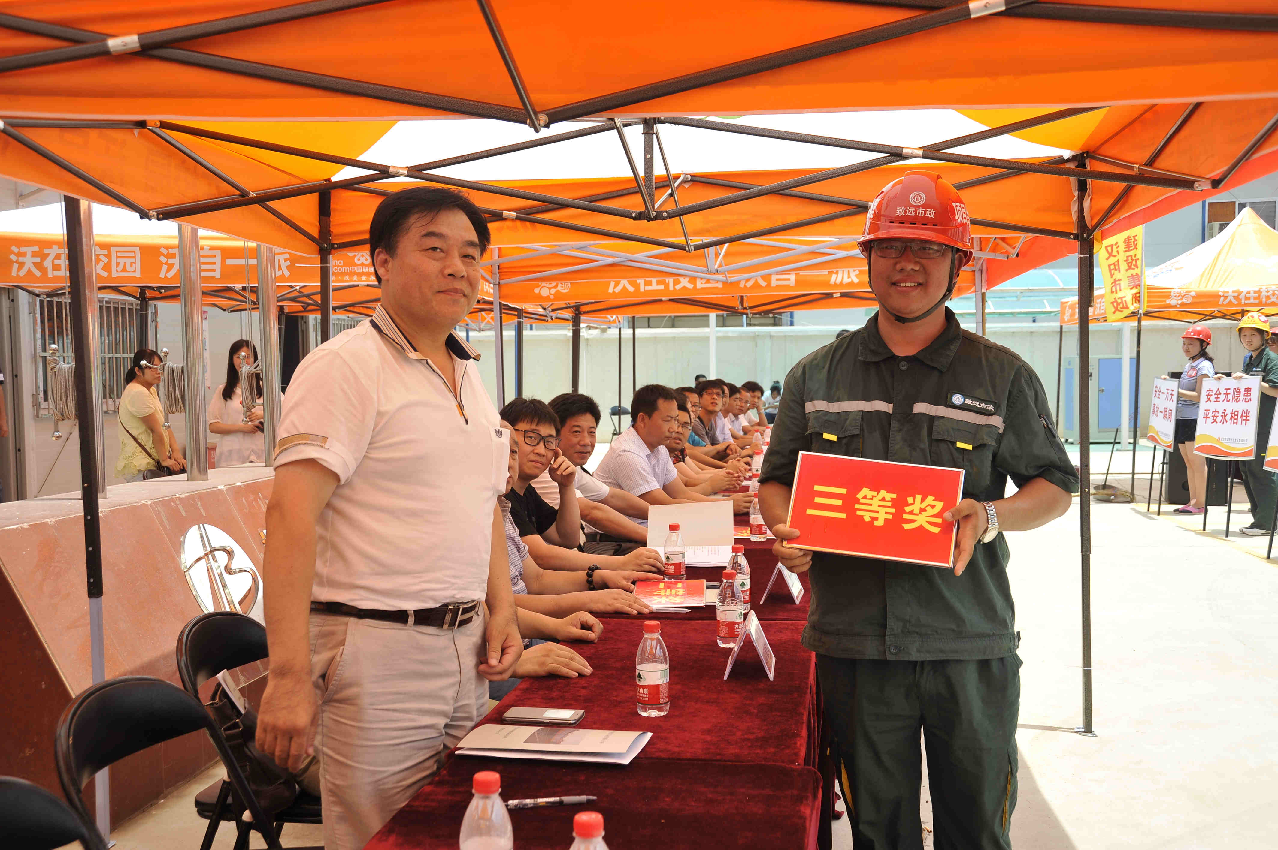 6月23日,我公司英才小學(xué)項(xiàng)目部迎來了漢陽市政2015年度安全生產(chǎn)應(yīng)急演練活動,公司領(lǐng)導(dǎo)高度重視,動員全體員工積極籌備演練活動。來自漢陽市政建設(shè)集團(tuán)公司的7個單位10支參賽隊(duì)伍共計(jì)200余人參與了演練,市城建委建設(shè)工程安全站、市建設(shè)安全管理協(xié)會、市城投公司、漢陽區(qū)建管站、武漢新區(qū)投資公司等單位的領(lǐng)導(dǎo)觀看了演練比賽。演練比賽“第一名”最終由漢陽大道、解放大道下延線聯(lián)合項(xiàng)目部演練的支架坍塌應(yīng)急救援摘得。我公司圓滿的完成了賽事的各項(xiàng)后勤工作,并獲得了集團(tuán)公司頒發(fā)的“最佳組織獎”。