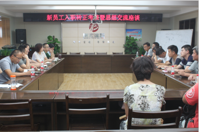 為深入了解見習(xí)期滿轉(zhuǎn)正員工思想動態(tài),傾聽他們對公司發(fā)展、個人成長的意見、期望和訴求,幫助他們理清思路、找準(zhǔn)定位、合理進行職業(yè)生涯規(guī)劃,7月14日上午,博宏建設(shè)召集13名2014年入職員工,開展轉(zhuǎn)正員工考核暨思想交流座談會,公司支部成員、總助、工會主席均出席此次座談會。