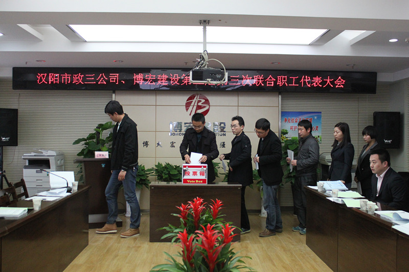 下午1時,伴隨著《國際歌》鏗鏘有力的旋律,武漢博宏建設有限公司第三屆第三次職工代表大會順利閉幕。