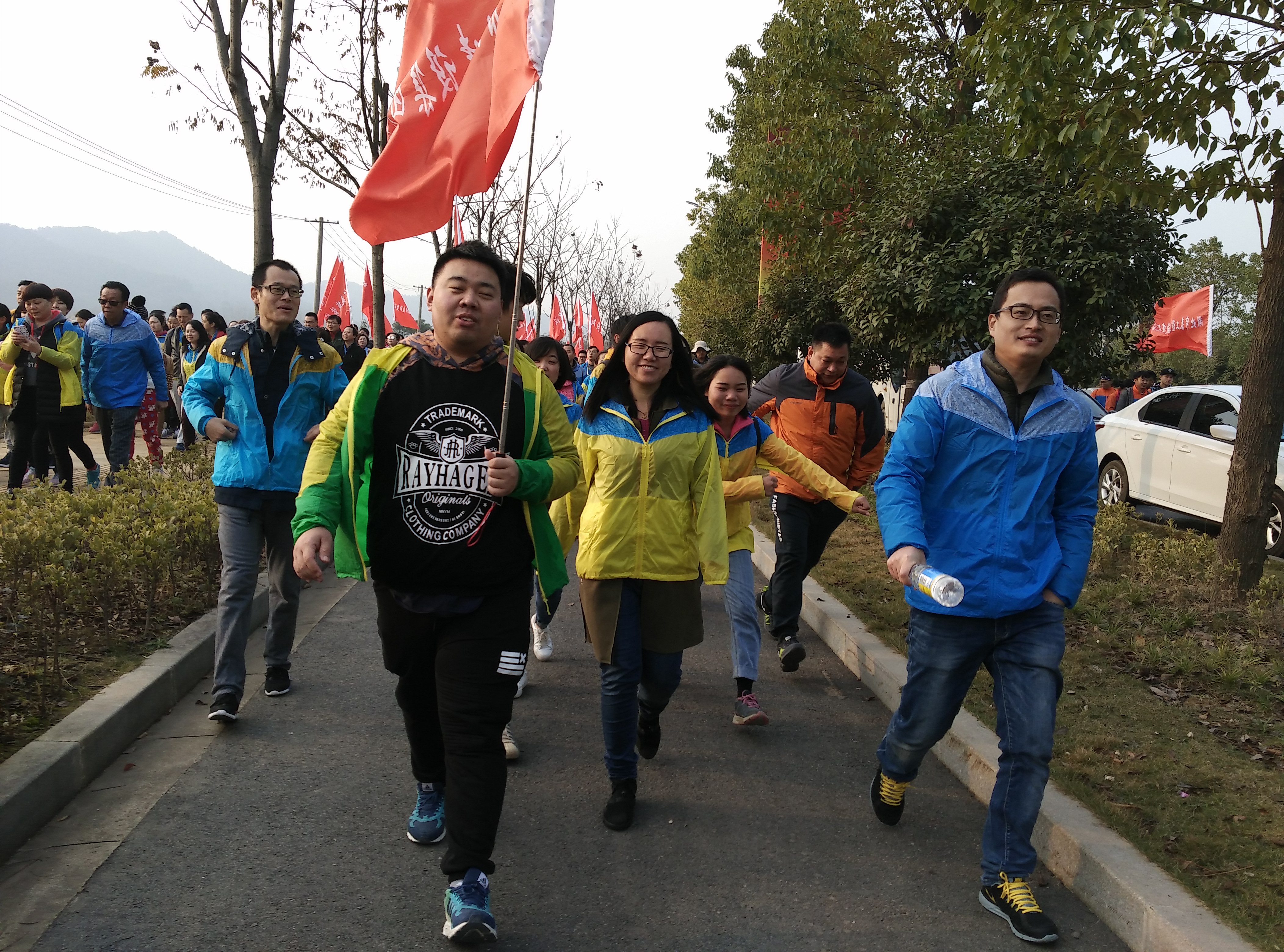 途中職工們精神飽滿,談笑風(fēng)生,著活動制服,在旗幟的引領(lǐng)下,邁步前進,眾人一邊呼吸著醉人的野外空氣,一邊成群結(jié)隊游走在綠草花海中放松身心,與行業(yè)同仁們交流談心,歡笑聲灑落在山間綠道,成為綠道中最靚麗的一道風(fēng)景線。