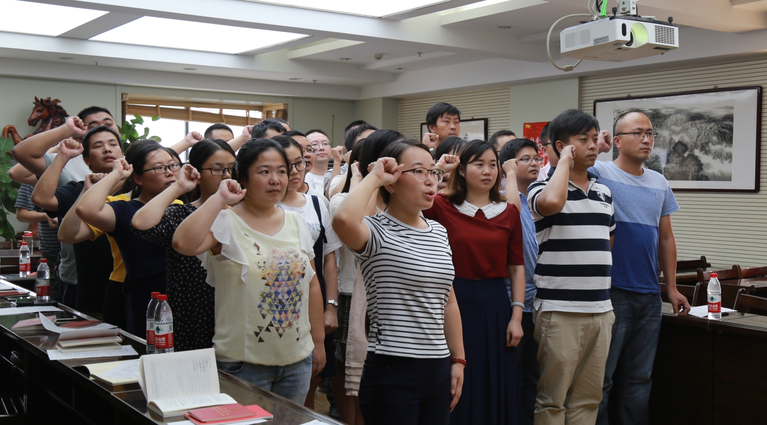為迎接黨的十九大順利召開,8月15日,漢陽市政三公司八月支部主題黨日活動在公司會議室拉開帷幕,活動以“學習‘7.26’習近平總書記重要講話精神,迎接黨的十九大”為主題,全體黨員齊唱國歌、重溫入黨誓詞、看黨章讀黨規(guī)、學系列講話······活動環(huán)節(jié)豐富,內(nèi)容充實。