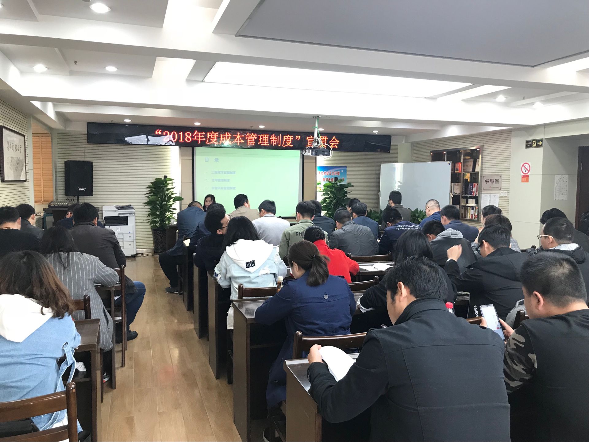 4月14日上午,“2018年度成本管理制度”宣貫會暨“施工合同風(fēng)險防范”法律專題講座在公司大會議室順利召開。博宏建設(shè)總經(jīng)理助理李艷娥、合約審計部、法律事務(wù)部、項目經(jīng)理、施工主管、預(yù)算員及琴臺綠化公司等相關(guān)人員約50余人參加了本次會議。