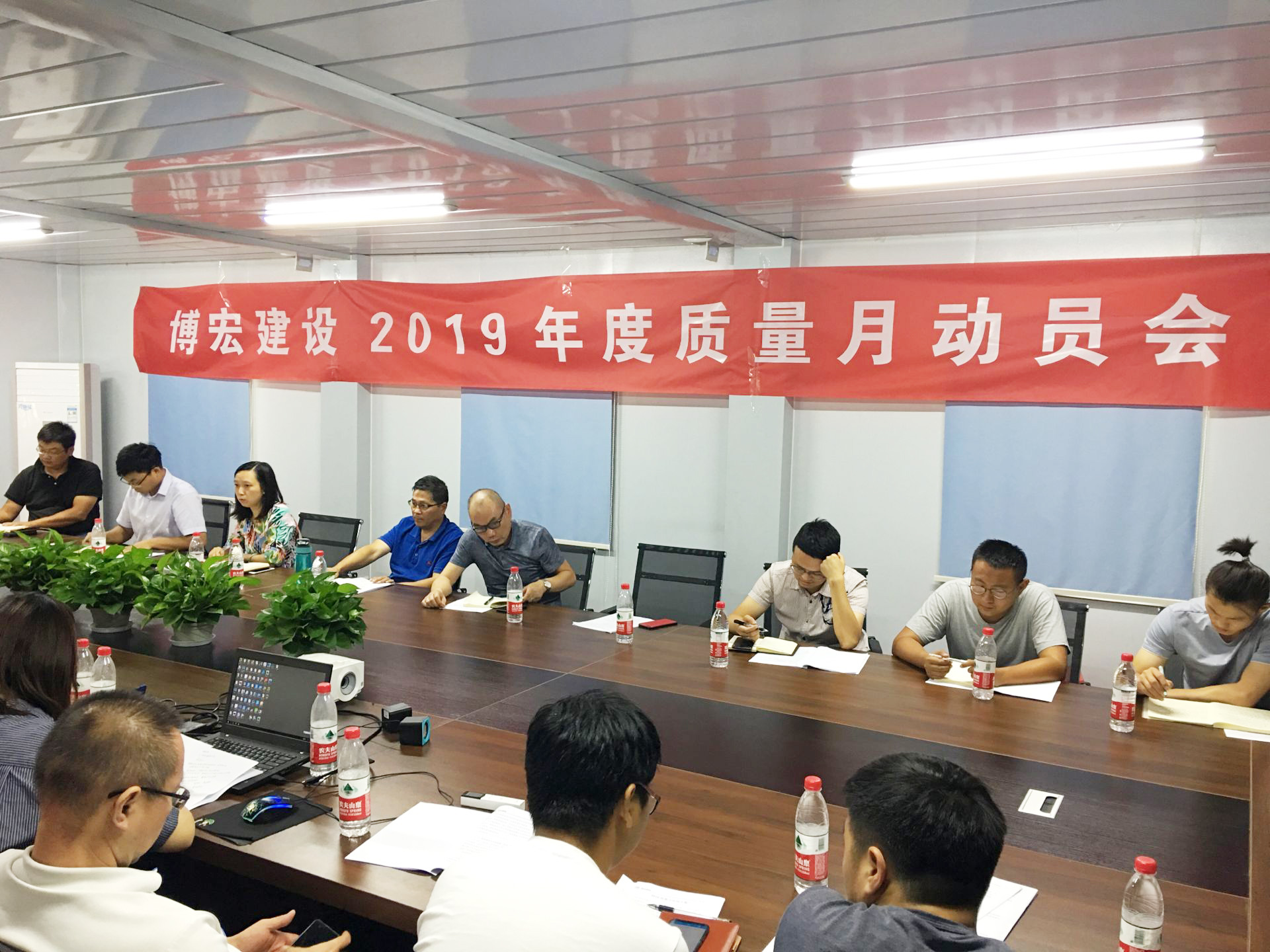 今年9月是全國第42個“質(zhì)量月”,為響應(yīng)“共創(chuàng)中國質(zhì)量,建設(shè)質(zhì)量強國”的活動主題,提高質(zhì)量意識,落實質(zhì)量責(zé)任體系,9月25日, 博宏建設(shè)2019年質(zhì)量月動員會在漢陽市政建設(shè)大廈項目部會議室成功舉行,會議要求各項目部要提前策劃、精心部署,從現(xiàn)場實際出發(fā),切實加強公司工程質(zhì)量管理工作,開展多種形式的“質(zhì)量月”活動,為高品質(zhì)工程的建設(shè)保駕護航。黨支部副書記郭一清布置了活動具體任務(wù)和要求,宣布“質(zhì)量月”活動啟動,正式拉開了公司“質(zhì)量月”系列活動的帷幕。