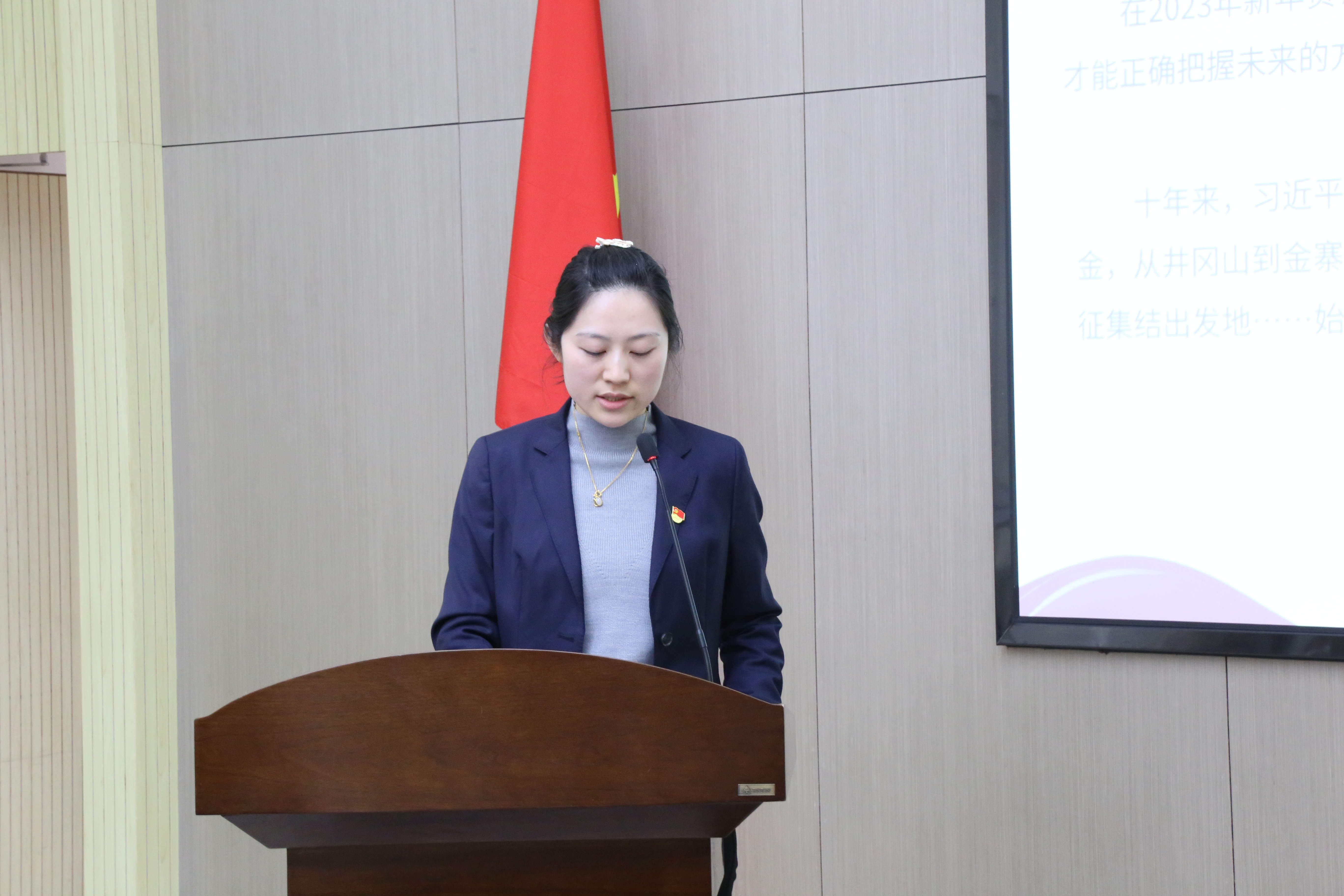 漢陽市政集團(tuán)機(jī)關(guān)第一黨支部黨員洪珂為帶領(lǐng)全體黨員學(xué)習(xí)習(xí)近平總書記重要講話——2023年新年賀詞。講話精神也讓全體黨員更加深刻地認(rèn)識到今天的中國是夢想接連現(xiàn)實的中國、是充滿生機(jī)活力的中國、是賡續(xù)民族精神的中國、是緊密聯(lián)系世界的中國。明天的中國,力量源于團(tuán)結(jié),全體黨員應(yīng)當(dāng)厚植家國情懷、涵養(yǎng)進(jìn)取品格,以奮斗姿態(tài)激揚青春,不負(fù)時代,不負(fù)華年。
