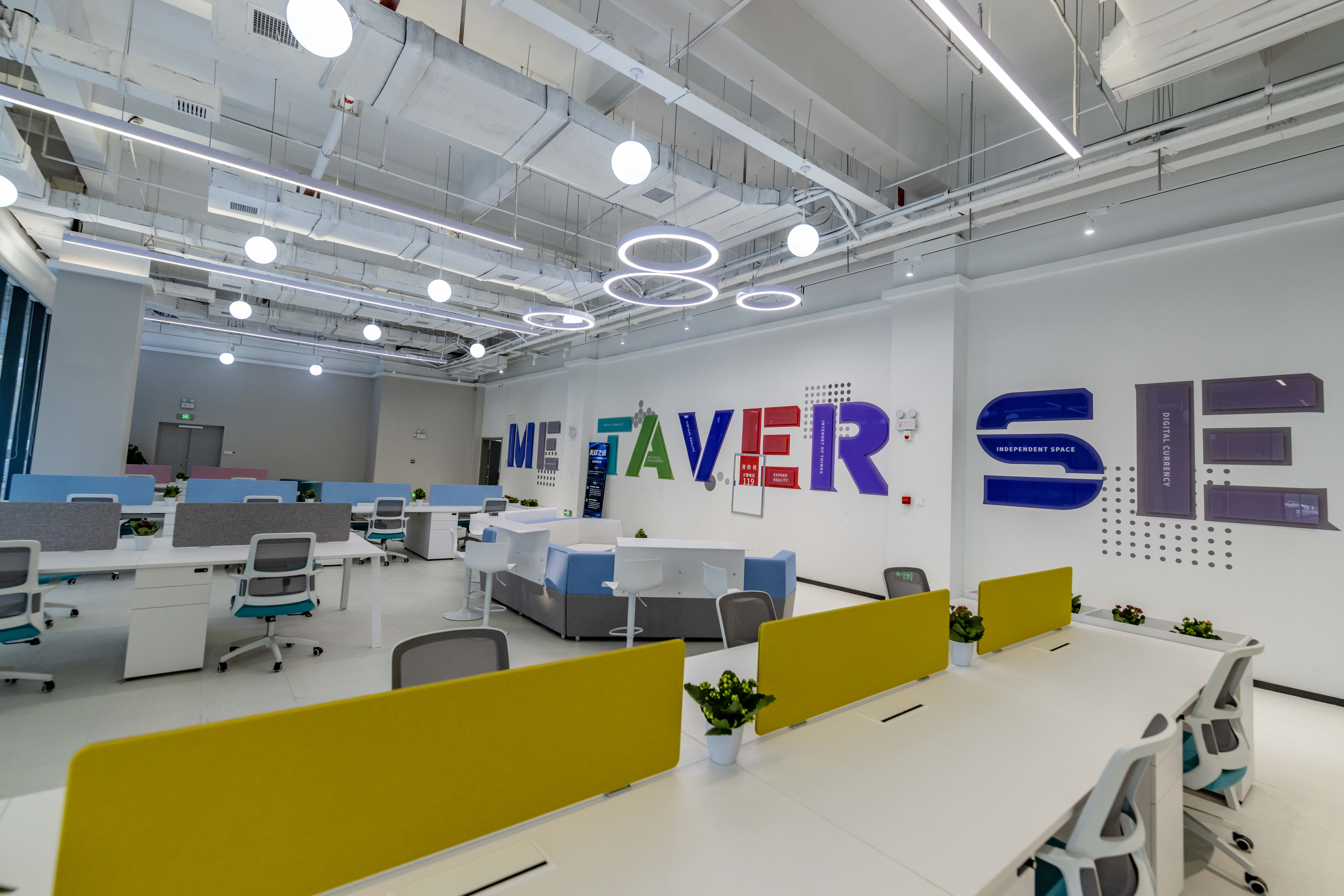 利用不同顏色不同紋理的木紋磚將辦公區(qū)域與休閑區(qū)域進(jìn)行分割。這樣各功能性分區(qū)都有固定的主要功能,也可安置各自的特色家具。整個(gè)空間采用了親和、天然性的裝飾材料,顏色的碰撞、元宇宙元素的融合,創(chuàng)造了具有未來(lái)感、幸福感的空間氛圍。