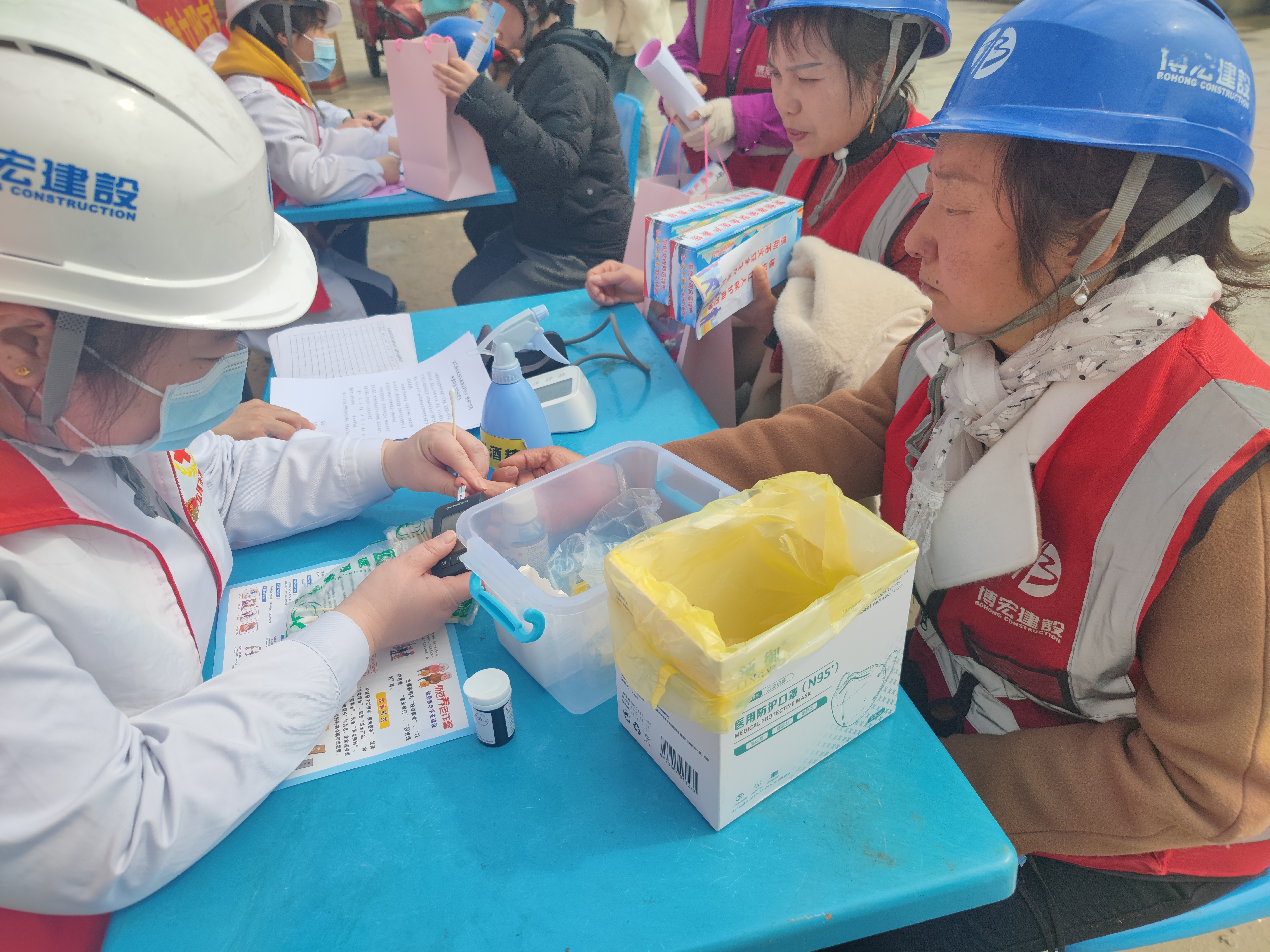 項(xiàng)目部還邀請(qǐng)了社區(qū)“守心”志愿服務(wù)隊(duì)、宜昌市惠民醫(yī)院醫(yī)務(wù)人員為女工友開展健康體檢,其中包含血壓、血糖檢測(cè)、預(yù)約免費(fèi)兩癌篩查等服務(wù)項(xiàng)目,醫(yī)務(wù)志愿者詳細(xì)了解了工友們的生活習(xí)慣,并耐心解答他們提出的健康問題。項(xiàng)目部和社區(qū)還為女工友們準(zhǔn)備了美麗的康乃馨花束,給大家送上了誠(chéng)摯的節(jié)日祝福。