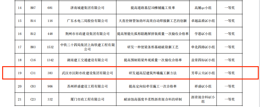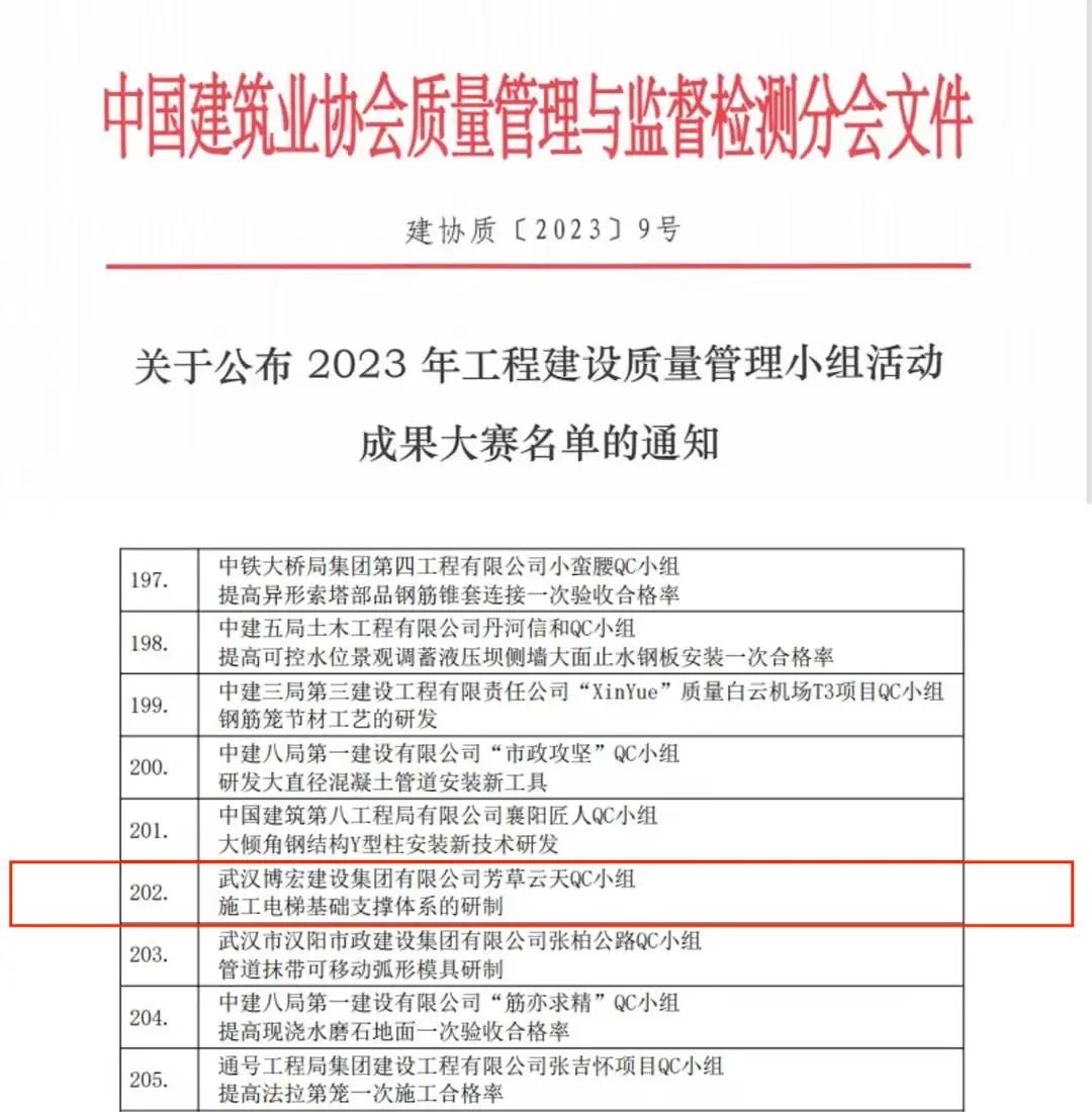 近日,中國建筑業(yè)協(xié)會、中國施工企業(yè)管理協(xié)會與中國市政工程協(xié)會工程建設(shè)質(zhì)量管理小組活動成果大賽獲獎名單陸續(xù)出爐,基于中南科研設(shè)計中心建設(shè)項目現(xiàn)場情況總結(jié)出的《施工電梯基礎(chǔ)支撐體系的研制》、《提高鋼結(jié)構(gòu)對接焊縫驗收合格率》與《研發(fā)超高層建筑外墻施工新方法》3項QC成果榮獲國家級獎項。