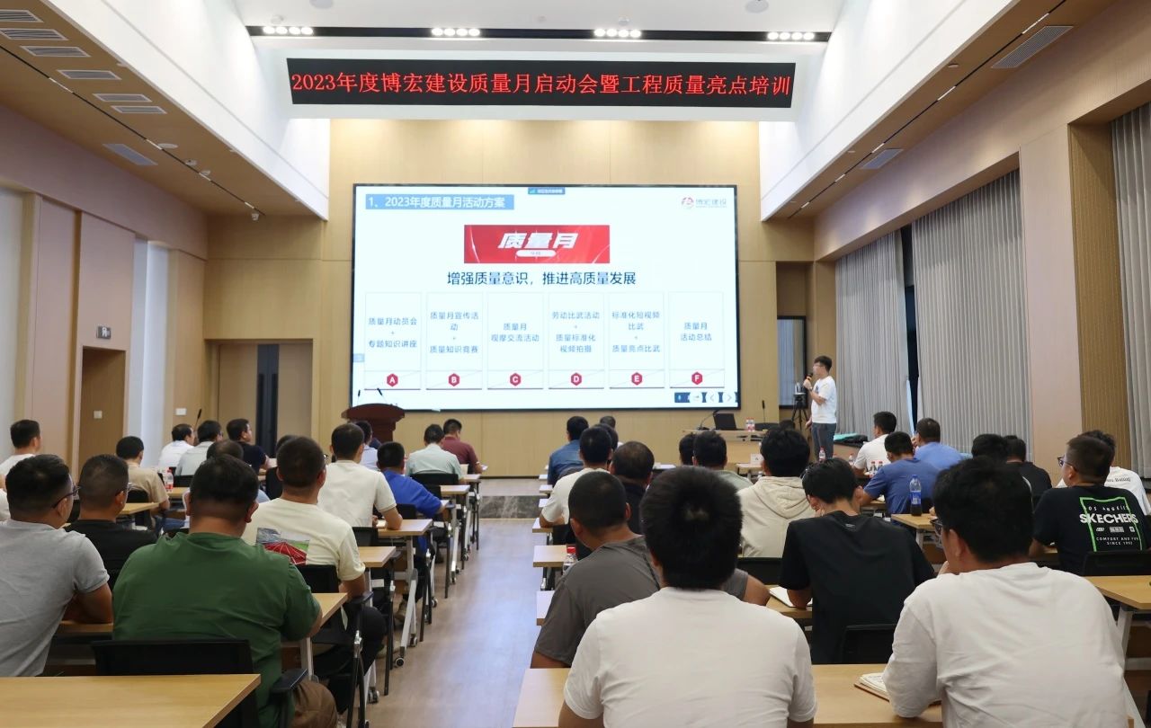 今年9月是第45個(gè)全國(guó)質(zhì)量月,為全面貫徹黨的二十大精神,落實(shí)《質(zhì)量強(qiáng)國(guó)建設(shè)綱要》部署,促進(jìn)質(zhì)量強(qiáng)國(guó)建設(shè)。9月15日下午,博宏建設(shè)舉辦以“增強(qiáng)質(zhì)量意識(shí),推進(jìn)質(zhì)量發(fā)展”為主題的2023年質(zhì)量月啟動(dòng)會(huì)暨工程質(zhì)量亮點(diǎn)培訓(xùn),黨委書記、董事長(zhǎng)、總經(jīng)理鄒勇,總經(jīng)理助理李暉,質(zhì)量管理部部長(zhǎng)、市內(nèi)外各項(xiàng)目部負(fù)責(zé)人及質(zhì)量崗位人員共計(jì)101人線上線下同步參與活動(dòng)。