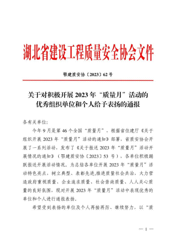 近日,博宏建設(shè)榮獲湖北省建設(shè)工程質(zhì)量安全協(xié)會2023年“質(zhì)量月”活動優(yōu)秀組織單位表彰,李德江、江緒芫、吉澤帥、鄭智秋、王杰、王小勇、劉陽、馬滕、郭永寧、柯善偉共10人榮獲2023年“質(zhì)量月”活動優(yōu)秀個人表彰。