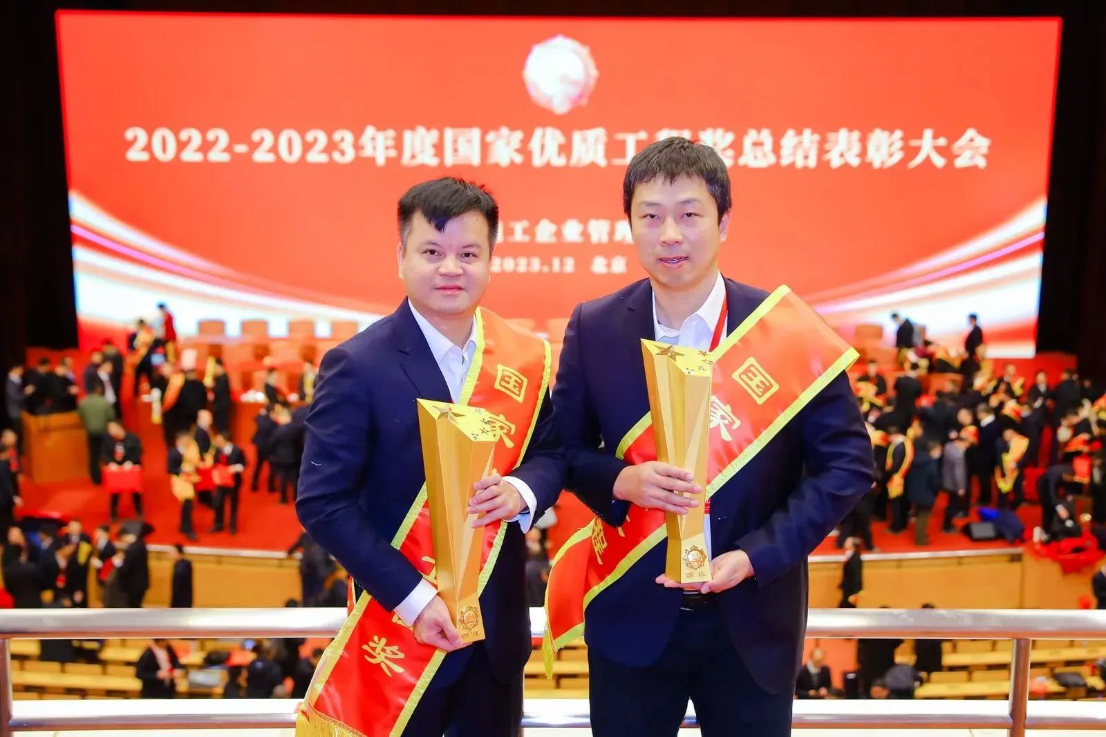 12月24日,2022~2023年度國家優(yōu)質(zhì)工程表彰大會(huì)在北京隆重召開,公司總經(jīng)理助理李暉、項(xiàng)目經(jīng)理童威接受頒獎(jiǎng)。博宏建設(shè)集團(tuán)捧回了兩座浸染著汗水與拼搏的榮譽(yù)獎(jiǎng)杯。